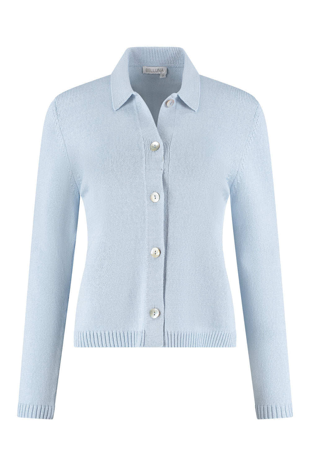 Belluna Calim is een vestje gebreid in een soort lintgaren, dit maakt dit vestje iets meer casual. Calim heeft een kraag, en is afgewerkt met ribs aan onderkant en manchetten. Sluiting is met parelmoerknopen.